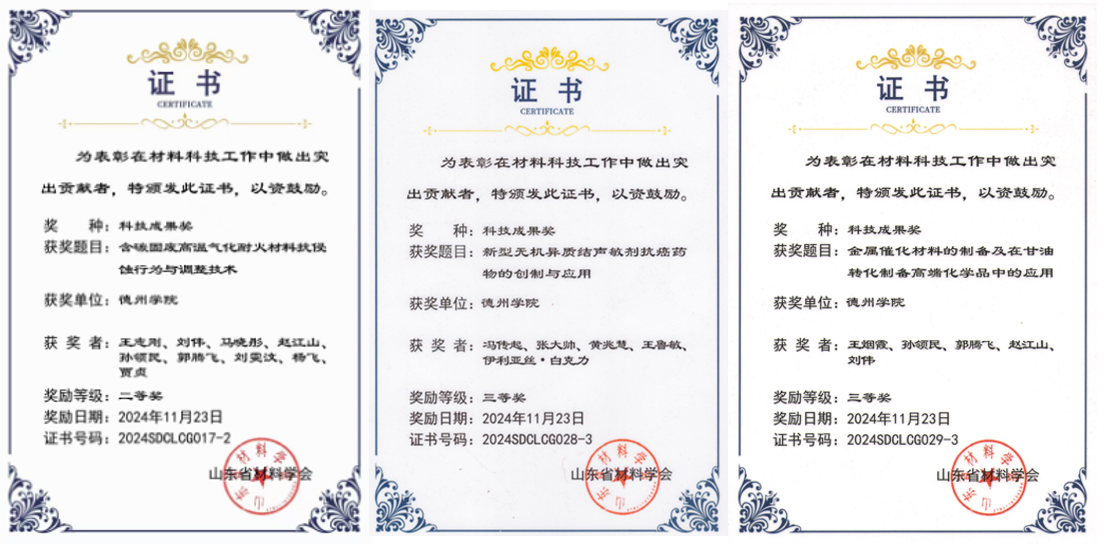 山东省材料科技成果由山东省材料学会组织,奖旨在表彰在省内材料领域科技工作中做出突出贡献集体和个人。古天乐代言太阳集团3项成果的获奖实现了在该成果上的新突破,是公司近年来积极开展科研团队建设的体现,也为公司团队建设打下了基础。