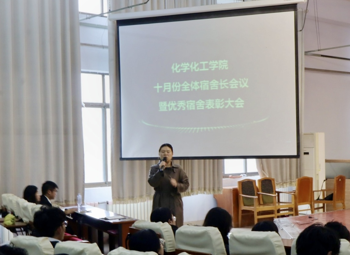 在会议过程中,首先由宿管部负责老师进行开场发言,详细阐述了宿舍中频发的若干问题,主要包括违规电器使用、用电安全事项以及宿舍卫生状况。随后,主持人宣读了文明宿舍获奖名单。接着,辅导员为获奖宿舍的代表颁发了荣誉证书及奖品。此外,会议尾声还特别邀请了优秀宿舍的舍长代表上台,分享了他们在宿舍管理方面的宝贵心得与经验。