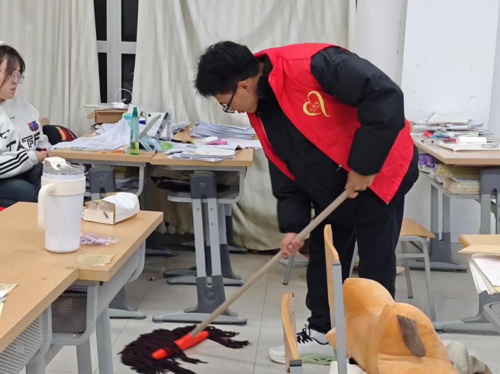 众多化院志愿者积极参与考研自习室清洁活动。他们携带清洁工具,热情投入工作,对桌面、地面、窗户及角落进行全面清理,不放过任何细节,充分展现化院员工党员的志愿服务精神。经过数小时努力,考研自习室面貌焕然一新,桌面干净整洁,地面无杂物,窗户明亮,自习室充满清新气息。