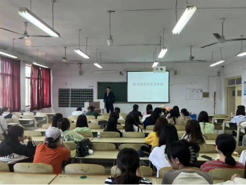 实习过程分为校内动员和校外实习两部分。校内动员于2023年5月9日由刘伟老师针对化工企业的生产特点进行了安全培训和任务部署,帮助同学们更顺利地做好实习准备工作(图1)。校外实习于2023年5月10日王丽梅、范晋勇、刘爱珍、刘中敏、梁书芹和张鹏六位老师带队组织员工到山东瑞博龙化工科技有限公司学习化工产品的研发及生产流程,帮助同学们更好地完成毕业实习任务。