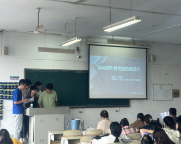 实习期间,在王芳、王爱丽、商书波、刘文博和杨飞等老师的组织和指导下,2021级环境工程专业同学针对冷凝器进行了课程设计,课程设计过程中员工通过查阅资料了解冷凝器的工作原理,并且进行冷凝器选型的设计计算,绘制冷凝器结构图,课程设计完成后组织了答辩(图2),帮助员工解决课程设计过程中遇到的问题,同时对同学们的课程设计成果进行检查。