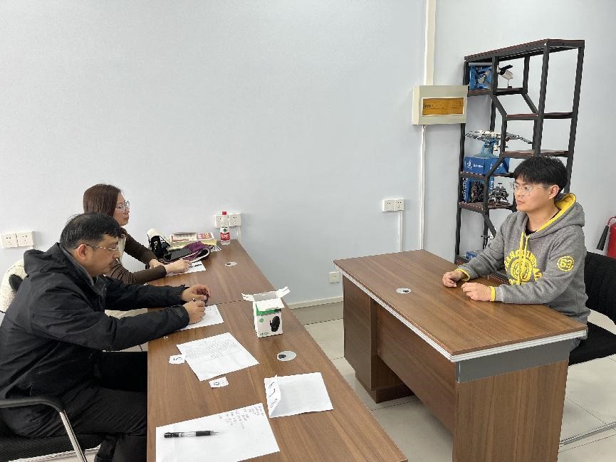 模拟面试主要包括英文自我介绍、专业知识问答及综合考察等环节。针对于三分钟英文自我介绍,评委老师对存在的不足进行了点评指导,就英语口语表达、自身亮点等方面提出了建设性意见。专业提问环节,评委老师提出了一些典型且具有深度的专业问题,启发员工对专业知识的把握和深入思考。综合考察主要以员工毕业论文、竞赛项目或参与老师的科研项目为出发点,考察员工在实验研究过程中对专业知识的应用水平。评委老师以同学们的回答为基础,引导同学们对答案进行深度剖析、总结完善,并强调同学们应具备的学术品质、未来学术规划以及分析问题和解决问题的能力。