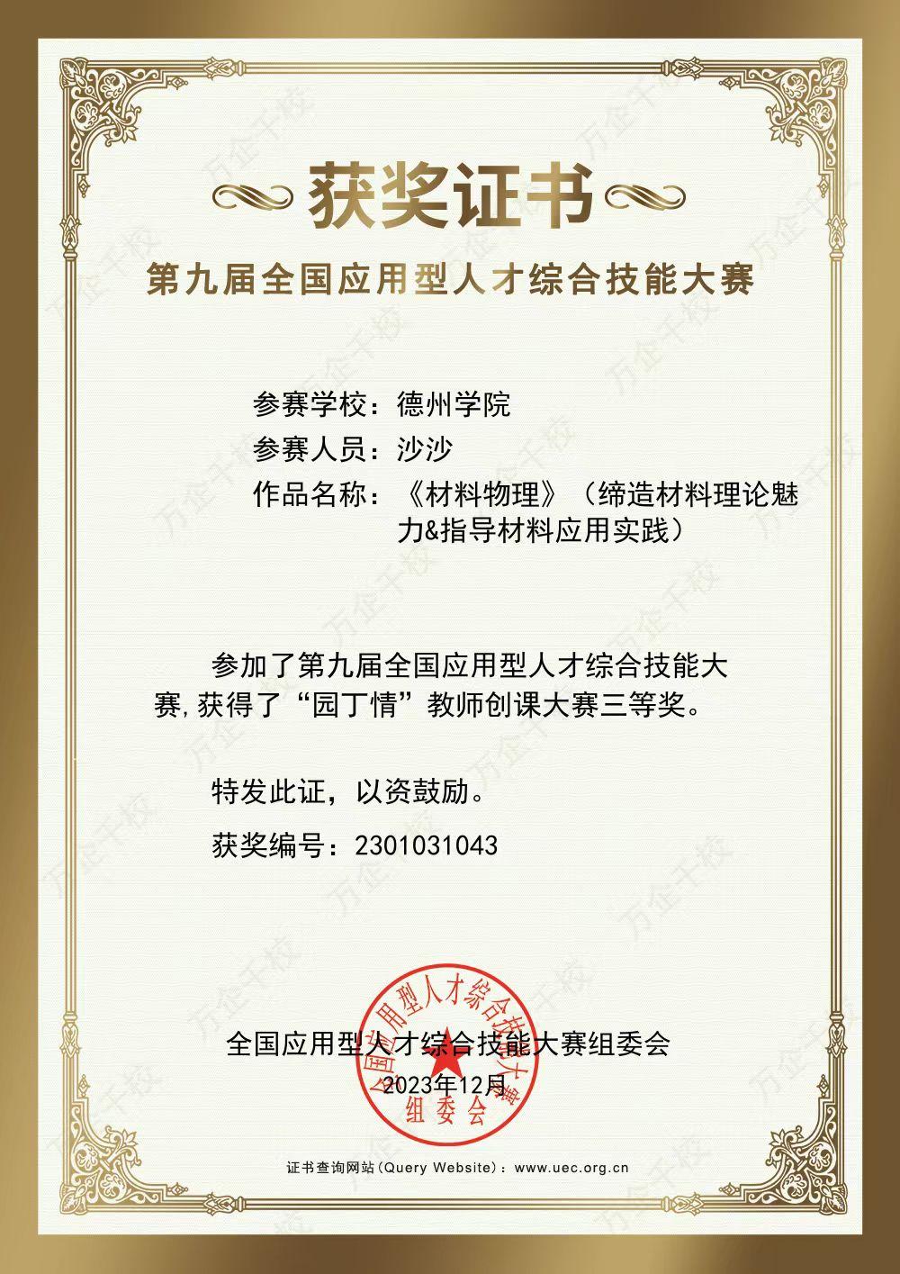 近日,全国应用型人才综合技能大赛圆满落幕,大赛以“应用创新,智领未来”为主题,秉持“以赛促学、以赛促创、以赛促教、以赛促业”的宗旨,着力搭建产业、院校、政府、企业协同培养创新型、应用型人才的综合平台,以培养创新和应用型人才。大赛中,公司教师刘文博荣获第十届全国应用型人才综合技能大赛—“园丁情”教师创课大赛一等奖,王芳、沙沙分别荣获第九届全国应用型人才综合技能大赛—“园丁情”教师创课大赛三等奖。