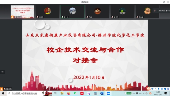 1月10日,公司与山东众家康健康产业投资有限公司举行线上对接交流会。山东众家康健康产业投资有限公司主要负责人、公司负责人及相关方向博士参加了对接交流会。