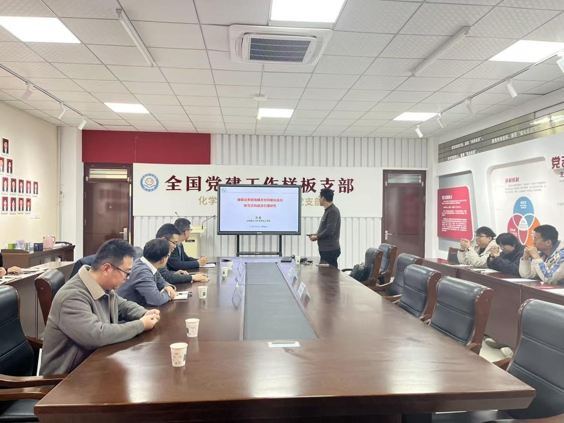 刘会教授作了题为《磁驱动多能场耦合协同催化反应新范式构建及机理研究》的学术报告,报告会上,刘会教授以传统催化反应面临的效率低、能耗高等痛点为切入点,系统阐述了磁驱动多能场耦合协同催化技术的核心逻辑。通过详实的数据、生动的案例以及直观的图表,详细解析了该技术如何整合磁场、电场及化学场,构建磁驱动多能场耦合新范式,刘教授介绍了团队在该领域的最新研究成果,报告结束后,现场青年教师和研究生与刘会教授展开深入交流。