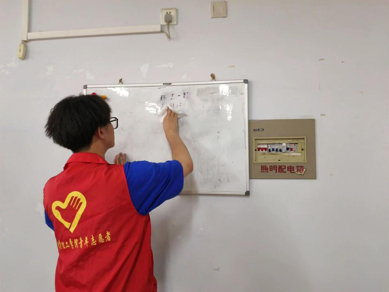 在此次活动中,学管部志愿者们在负责人的带领下来到指定教室,大家分工合作,各负其责,积极发扬不怕脏、不怕累的精神,充分彰显了青年志愿者的先锋模范作用,虽然大家身上都沾上了灰尘,脸上挂满汗珠,但脸上都洋溢着满足的笑容。在大家的齐心协力下,顽固的白板字被彻底清理干净,教室小白板焕然一新,环境卫生得到明显改善。