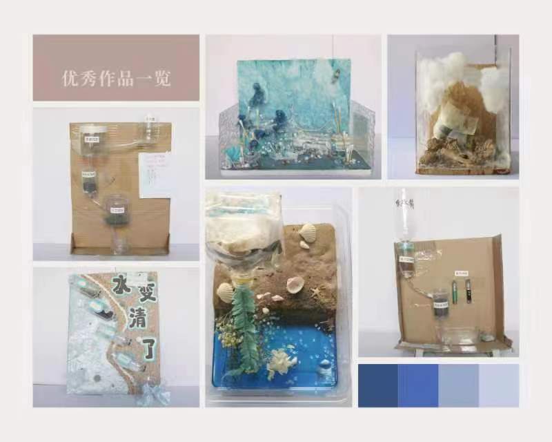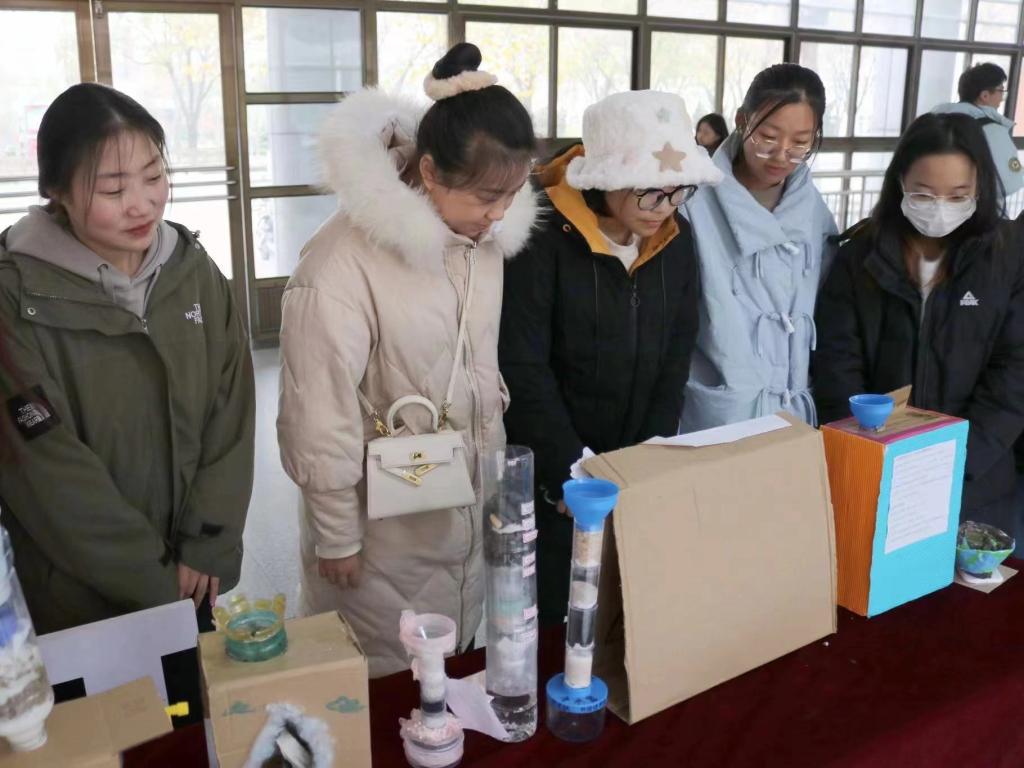 大赛以绿色环保、保护水资源为主题。参赛同学利用塑料瓶、废纸箱、纱布、冼脸巾、碳、砂石等废弃材料,严格按照净水工艺和流程,制作了净水器、净水模型等。大赛共收到来自19个公司的100余件作品,经过三轮评审,《水变清了》《花海》等27项作品突破重围,最终评选出一等奖6项、二等奖9项、三等奖12项。获奖作品在求实楼一楼大厅展出,获得了师生的广泛关注和一致好评。
