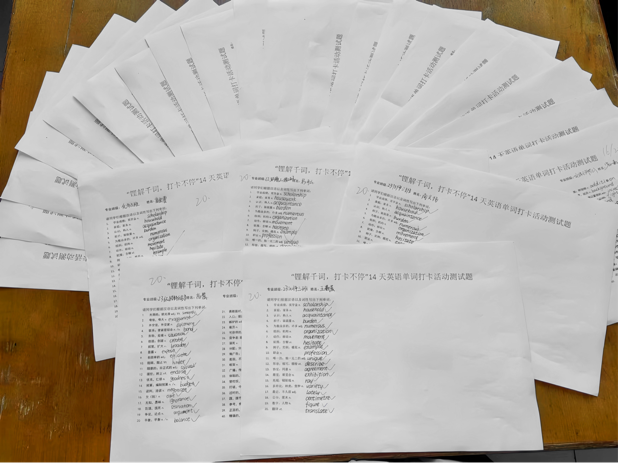 活动推出后,同学们积极参与,相互提醒、监督,每日上传截图,展示效果、分享经验,在广大同学中形成了一股学英语、记单词的热潮,为四六级考试打下坚实基础,自活动开展以来共有160余名同学参加,150余名同学全勤打卡。为检验学习效果,12月19日开展了线下的英语单词测试,同学们全力以赴,争取最好的成绩。参与员工纷纷表示收获满满,通过此次活动,找到了适合自己的学习英语方式方法,提高了学习效率。