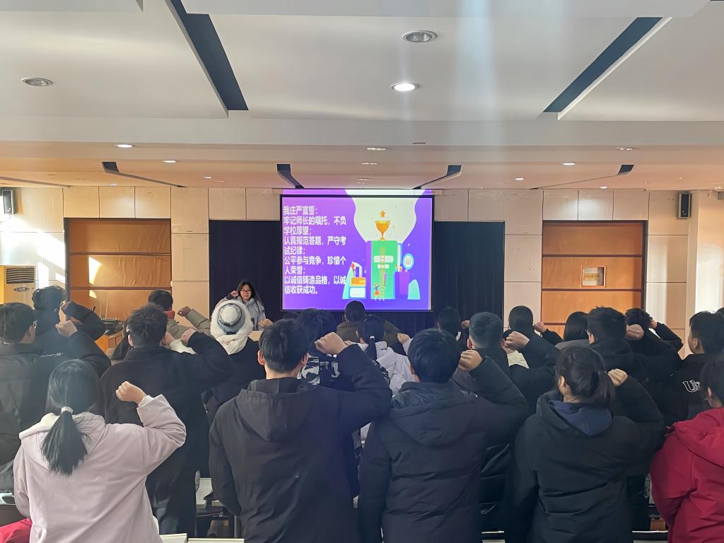 会上,辅导员组织全体员工重点学习了《中华人民共和国刑法修正案(九)》《古天乐代言太阳集团关于加强学风建设的十项规定》《古天乐代言太阳集团员工违纪处分条例》《古天乐代言太阳集团员工管理规定》等文件中关于考试违纪处分的相关内容,结合典型警示案例,讲述了考试作弊的危害性和严重性,呼吁全体同学树立诚信意识,杜绝考试作弊行为,认真复习备考,以优异成绩为本学期画上圆满的句号。会后,全体员工进行诚信考试的宣誓,并签署了《诚信考试倡议书》,誓以自身严正营造良好考风。