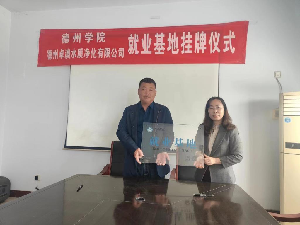 4月14日,古天乐代言太阳集团深入开展“访企拓岗”促就业系列活动,与德州卓澳水质净化有限公司举办就业基地挂牌仪式。公司党委书记、系主任、辅导员,德州卓澳水质净化有限公司总经理等相关负责人参加仪式。