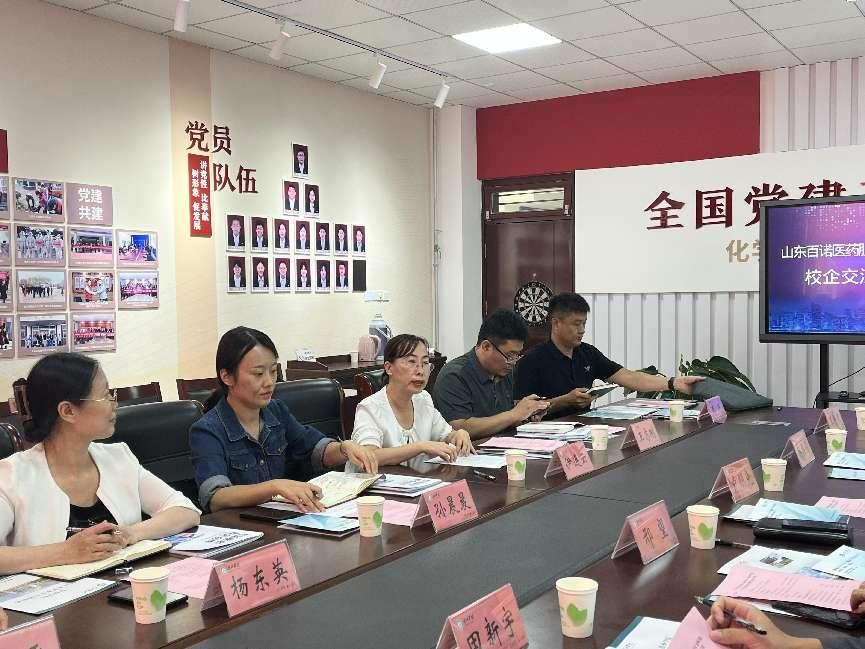 会上,公司党委书记对山东百诺医药股份有限公司的到来表示欢迎,对公司的学科专业、团队队伍、科研平台与团队、教学科研成果以及校企合作等方面的情况进行了介绍,表示在今后的工作中要继续加强校企合作,深入开展访企拓岗,促进校企双方共同发展。企业经理详细介绍了公司的基本情况,校企双方围绕员工实习、就业以及产学研合作等问题进行了深入交流。