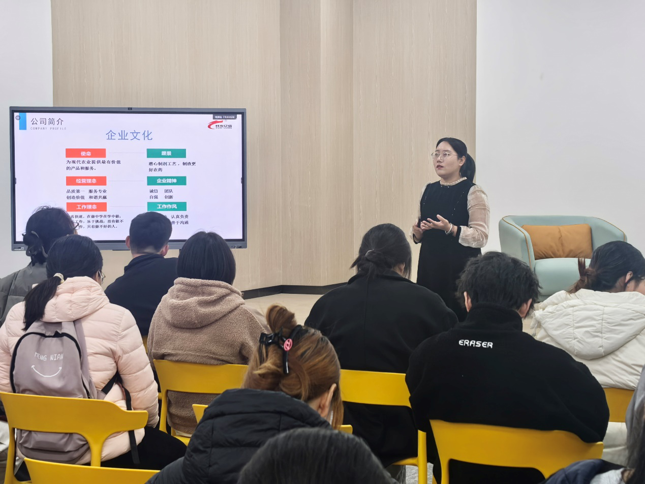 会上,企业代表介绍了关于我们、发展前景和企业文化,对招聘岗位、薪资待遇、职业发展路径进行详细介绍,帮助毕业生更详细地了解岗位信息。随后,毕业生与企业代表进行更深入详细的交流,部分有意向毕业生当场投递了简历并在会后进行了面试,与用人单位达成初步就业意向3人。