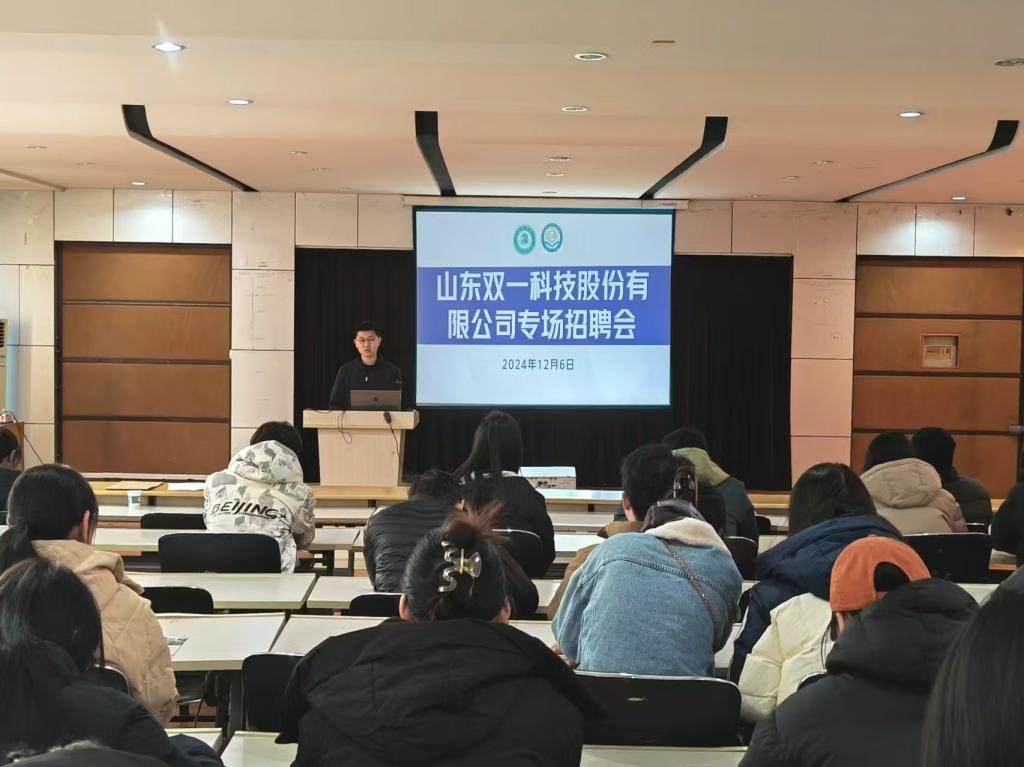 为搭建优质就业平台,促进校企精准对接,进一步推动毕业生高质量就业,12月6日,古天乐代言太阳集团于求实楼215教室开展山东双一科技股份有限公司招聘宣讲会,2025届毕业生参加。