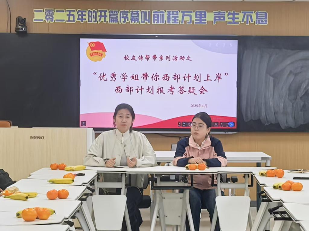 分享会上,魏艳秋从“西部计划”的政策背景、整体概况、选拔流程、服务内容等维度进行了系统讲解。她结合自身参与西部计划的亲身经历,深刻阐述了参与西部计划对个人能力提升、价值观塑造以及社会贡献的积极影响。她鼓励同学们勇敢迈出舒适区,走向西部,走进基层,用青春和热血书写属于自己的人生华章。