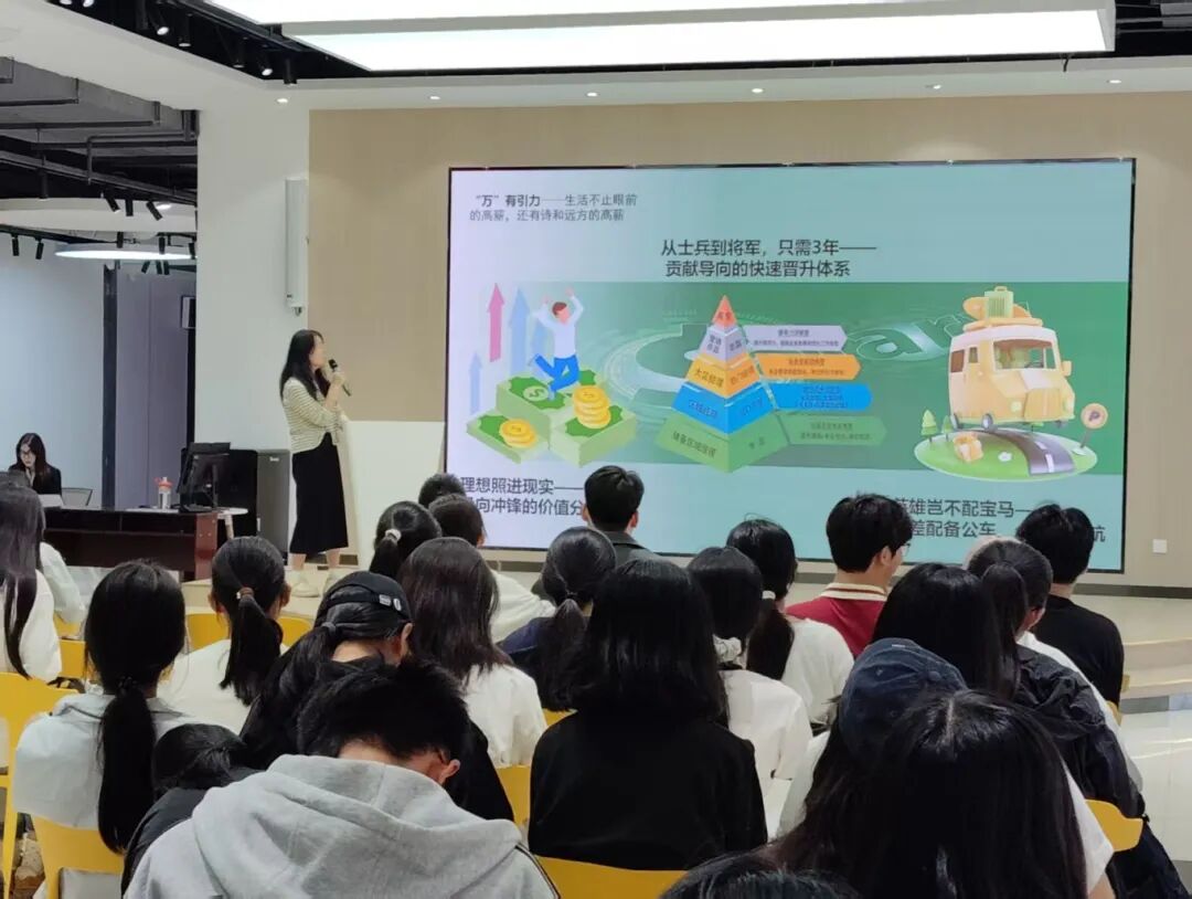 宣讲会上,万豪公司招聘团队系统介绍了企业的发展战略、业务布局及人才理念,重点发布了涵盖运营管理、供应链协调、安全管控等多元化的优质岗位。针对不同专业员工的学科背景与能力特长,企业代表深入解析了跨领域人才的素质要求与发展路径,引导员工突破学科边界认知,科学规划职业发展,充分发挥在精细化管理、流程优化等方面的专业优势。在互动环节,公司代表耐心解答了毕业生提出的各类问题,现场气氛热烈,员工反响积极。