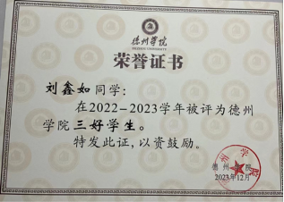 学习态度严肃认真,学习目的明确,态度端正,勤奋刻苦、锐意进取,善于总结学习经验,不断改进学习方法、理论联系实际,通过不懈努力,取得了优异的成绩。荣获2022-2023学年古天乐代言太阳集团“综合一等奖学金”、2022-2023学年古天乐代言太阳集团“三好员工”、2023-2024学年古天乐代言太阳集团“优秀老员工奖学金”、2023-2024学年古天乐代言太阳集团“综合二等奖学金”。
