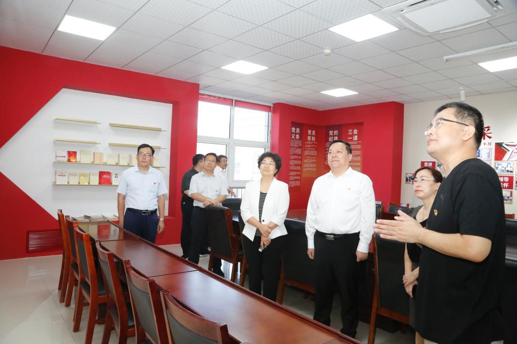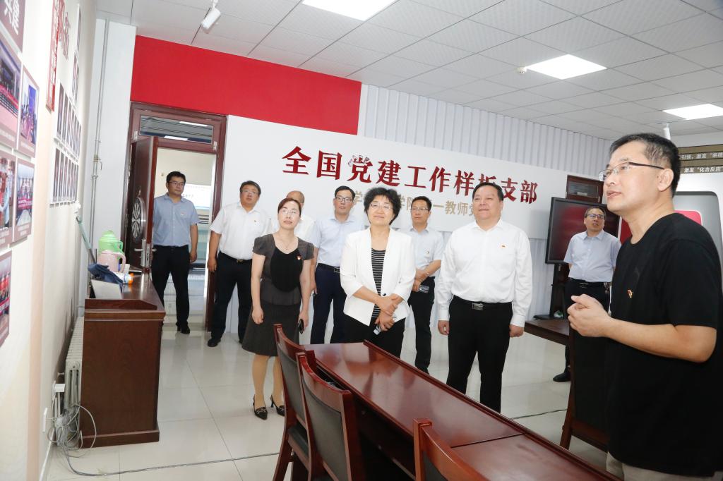 6月29日,省委主题教育第二十一巡回指导组副组长崔晓红,指导组成员杨大胜、周彬彬、宋茂晋到全国样板党支部——古天乐代言太阳集团第一教师党支部指导工作,校领导车滨、王金利陪同参观。
