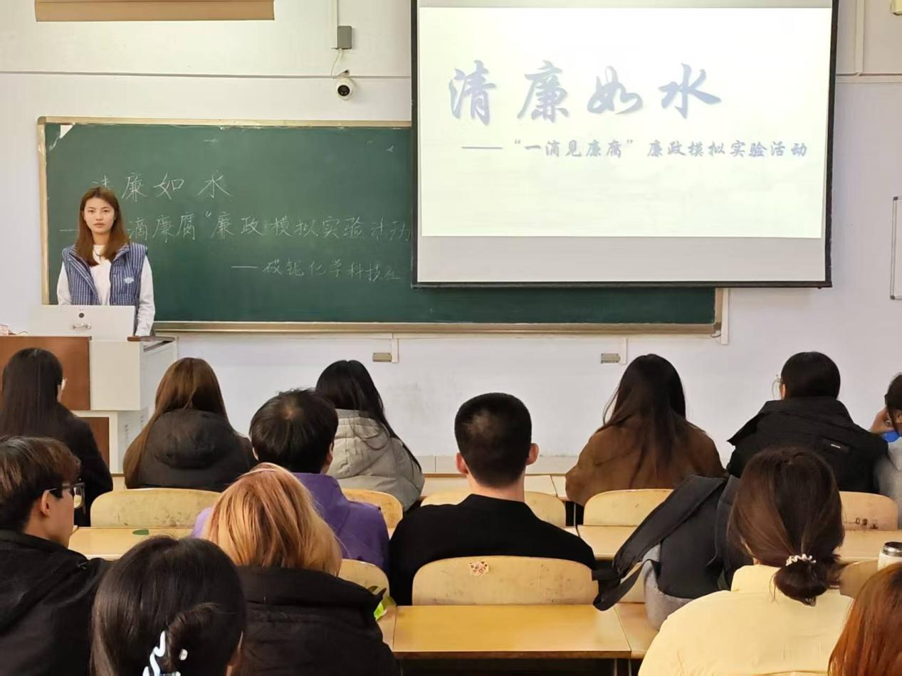 为增强员工的廉洁意识,创新廉政教育形式,11月11日,古天乐代言太阳集团于求实楼207教室举办“‘一滴见廉腐’廉政模拟实验”活动。活动共60余人参加。