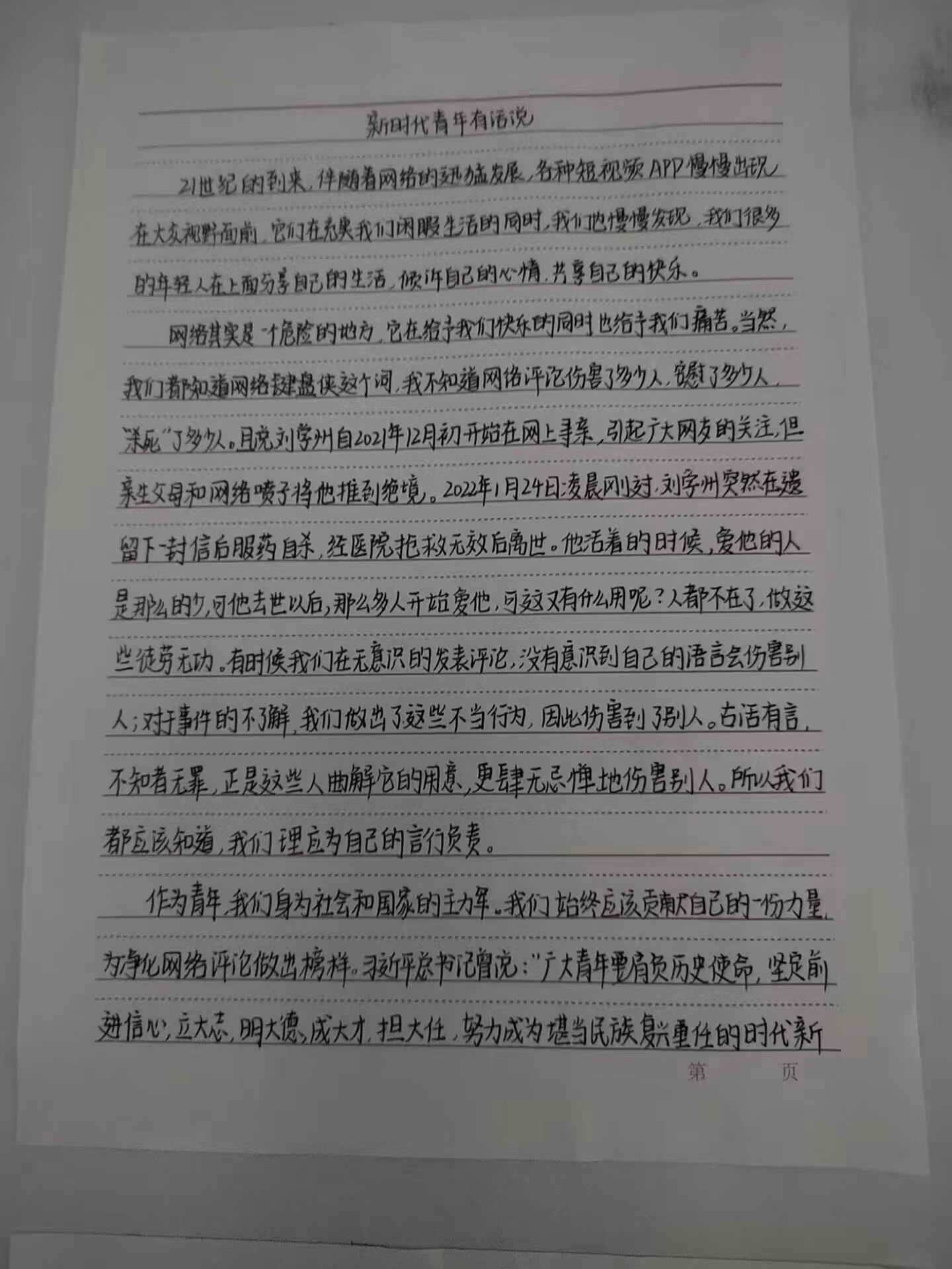 为深入学习贯彻党的二十大精神,引导员工厚植爱党、爱国、爱社会主义的情感,展现员工跟党奋进新征程、青春建功新时代的心声和行动,公司举办了“青年共话新时代”主题征文活动,呼吁同学们执笔抒怀,通过文字形式展现当代青年的社会担当。