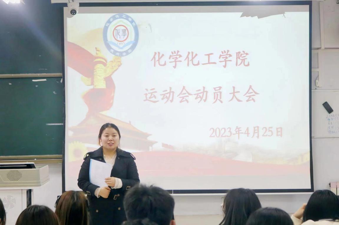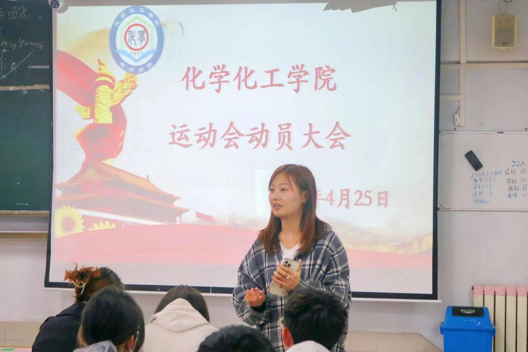 会议详细讲解了春季运动会的比赛项目、比赛流程及注意事项,并分享了往年参加运动会的经验与感受。团委书记激励在场全体运动员在比赛中敢于挑战自我、战胜自我,从集体荣誉出发,保持蓬勃向上的昂扬斗志,全力以赴,展现出化院人的体育实力和精神风貌,期待运动员们在比赛中创造更加辉煌的成绩。辅导员针对志愿者服务提出安排与要求,并对为运动会能够顺利进行而积极筹备的幕后工作人员表示感谢。
