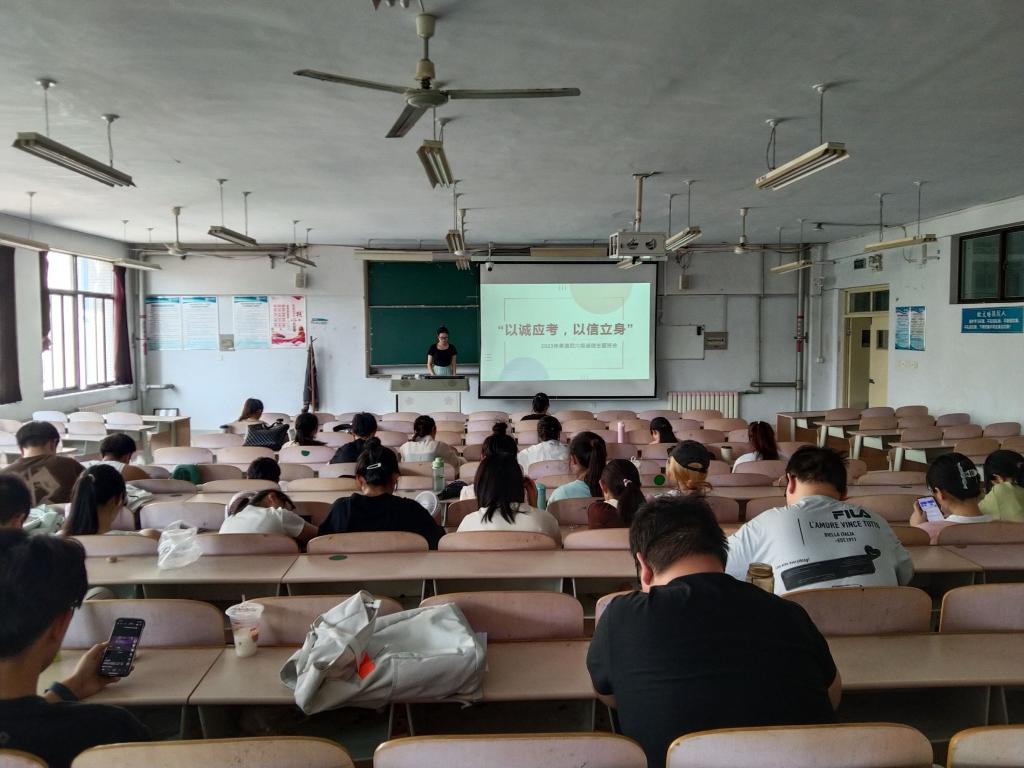 此次班会由班级负责人向大家介绍四六级考试题型和考试安排,强调了此次英语四六级考试中的考风考纪问题,向同学们普及宣传了《国家教育考试违规处理办法》等规章制度中有关作弊、替考等违纪行为的相关规定,引导同学们自觉抵制违纪作弊行为,正确面对考试,严肃考风考纪。最后,班级负责人叮嘱同学们利用好时间复习,积极备考,诚信考试。