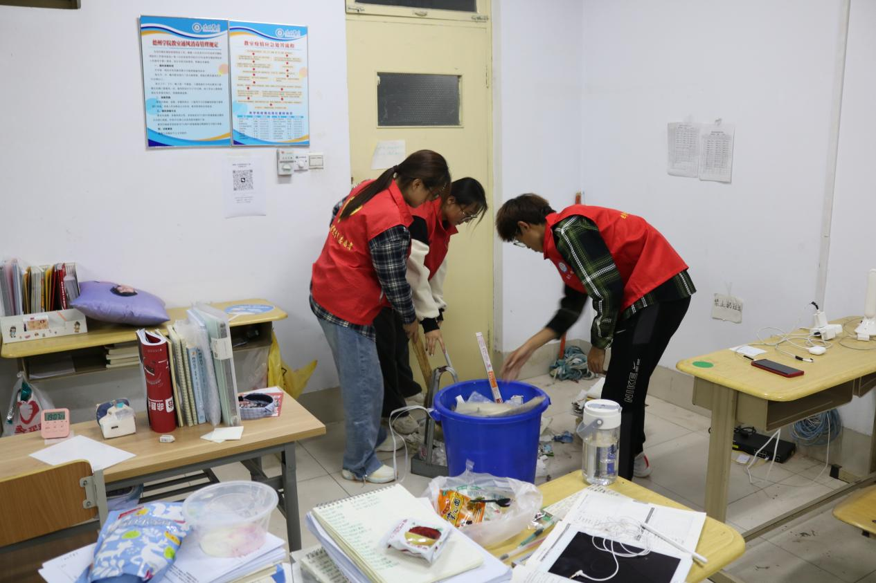 志愿者携带卫生工具准时到达指定地点,对教室进行整理桌面、清扫地面、擦黑板等清洁活动。大家手拿拖把、垃圾袋等工具,以认真的态度,仔细地清扫教室,充分发扬了化院学子的志愿服务精神。经过近一个小时的奋战,清扫工作圆满完成,教室变得干净整洁,一尘不染。