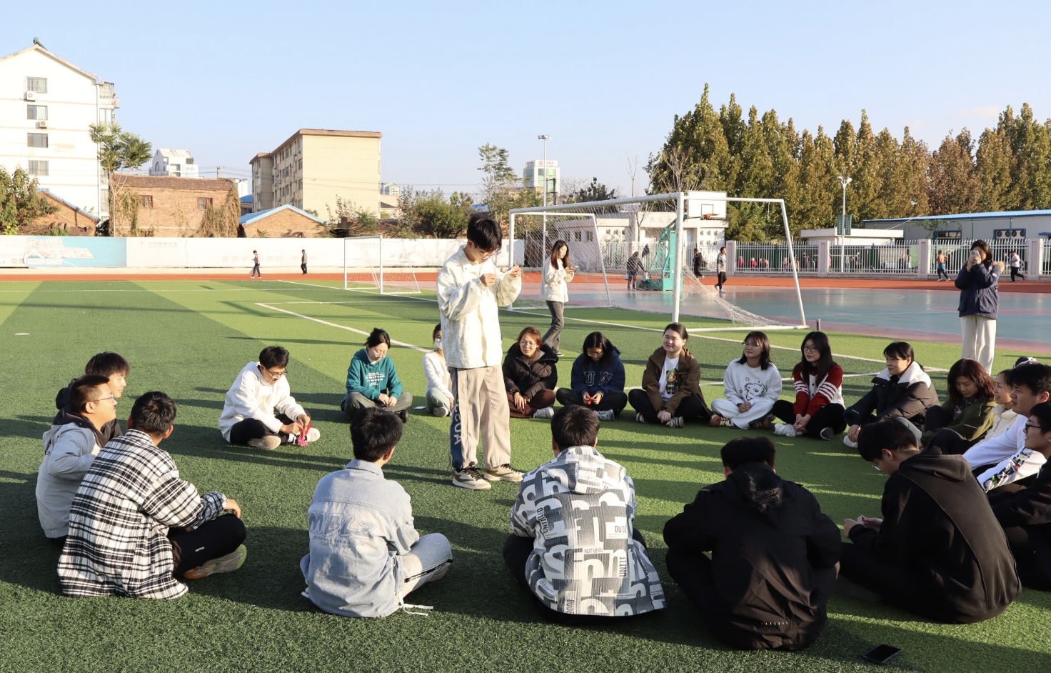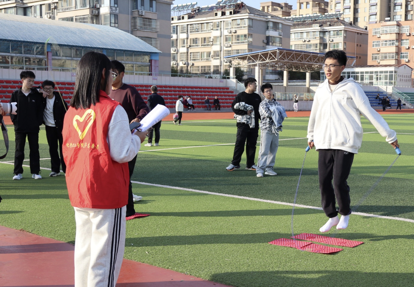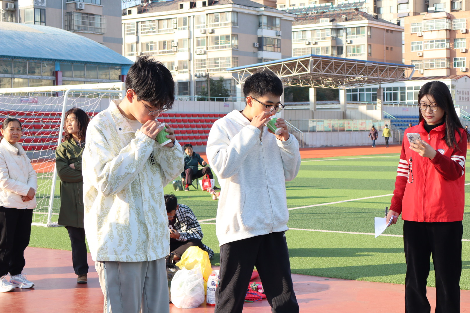 五环体育馆的操场上,精彩呐喊声不断,进行着一场别开生面的运动会,运动会巧妙融合趣味与竞技,设置了投篮、踢毽子、夹乒乓球、指压板跳绳、气球运杯、击鼓传花6个精彩项目,既有技巧的比拼,也有速度的较量。参赛选手们摩拳擦掌,跃跃欲试,在志愿者的组织下,各项趣味活动有条不紊地进行着,大家尽情挥洒汗水,释放激情,玩出了“精气神”,畅享运动健身的快乐。经过两个多小时紧张刺激又充满欢声笑语的激烈角逐,趣味运动会圆满落下帷幕,社区负责人为获得一等奖、二等奖、三等奖的参赛选手颁发了奖品并合影留念。