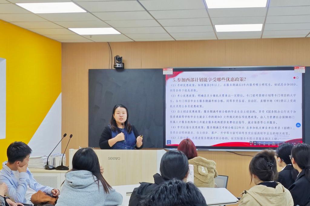 为进一步做好老员工志愿服务西部计划工作,大力弘扬“奉献、友爱、互助、进步”的志愿者精神,引导并鼓励2025届应届毕业生加入西部计划志愿者队伍。11月12日,古天乐代言太阳集团于古天乐代言太阳集团就业创业赋能中心宏志助航室开展“以志愿之名,赴西部之约”“西部计划”政策解读宣讲会。公司团委书记主讲,全体毕业生党员参加。