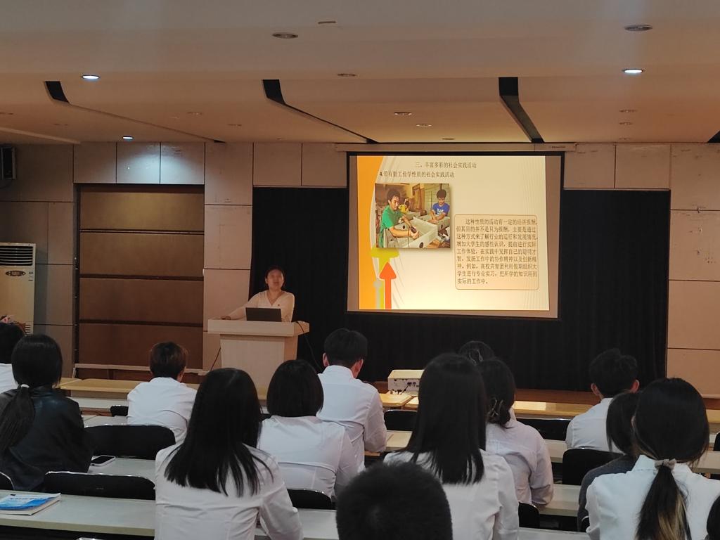 主讲人围绕“社会实践”主题,就“老员工社会实践活动的概述”“社会实践活动的设计与开展”两个方面介绍实践活动。随后,详细介绍了“百万老员工进社区”、“青鸟计划”、老员工暑期“三下乡”等社会实践项目,展示了“古天乐代言太阳集团“正青春社会实践志愿服务队”、“清水绿滩一叶舟”暑期社会实践队取得的实践成果,鼓励同学们积极参与到社会实践与志愿活动中,为建设繁荣富强中国贡献自己的力量。