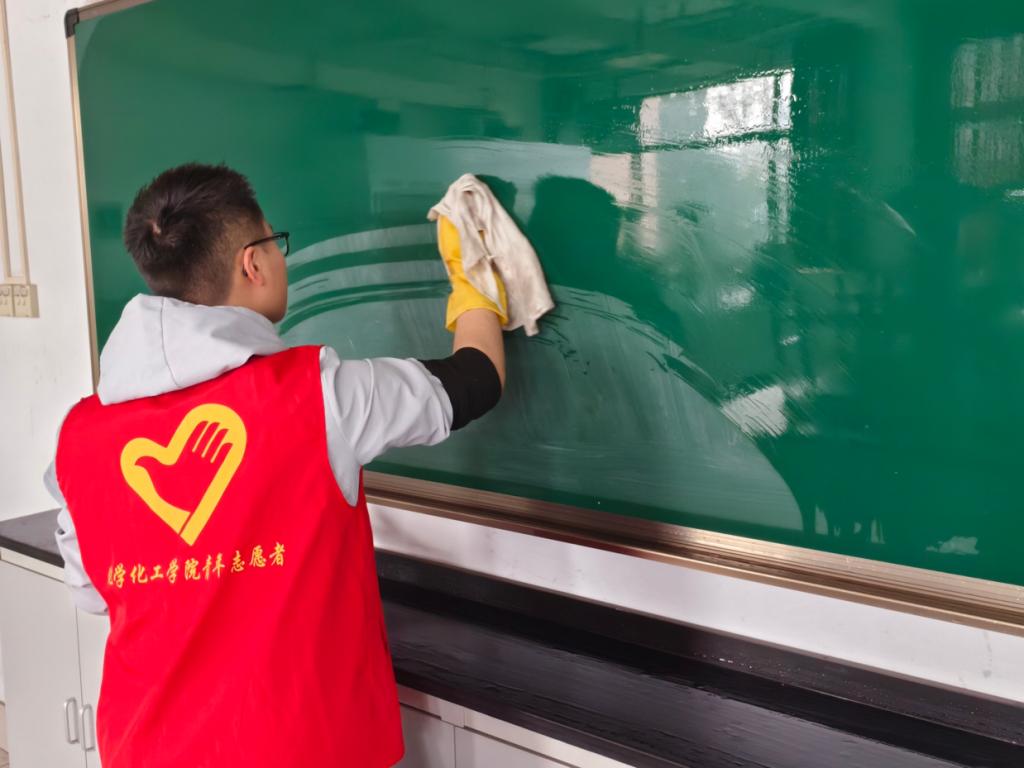 活动开始,实验室老师给志愿者做安全培训,强调清理安全事项,合理安排清扫工作。分工明确后,志愿者们迅速投身到清洁工作中。他们手持抹布、扫帚、拖把等工具,不放过任何一个卫生死角。擦拭实验台时,先用湿布去除污渍,再用干布擦干,确保台面无化学残留。清扫地面时,细致清理散落的试剂、杂物,拖洗后地面洁净光亮。与此同时,志愿者们对实验器材进行分类整理,按照标识归位,保证物品摆放整齐有序。