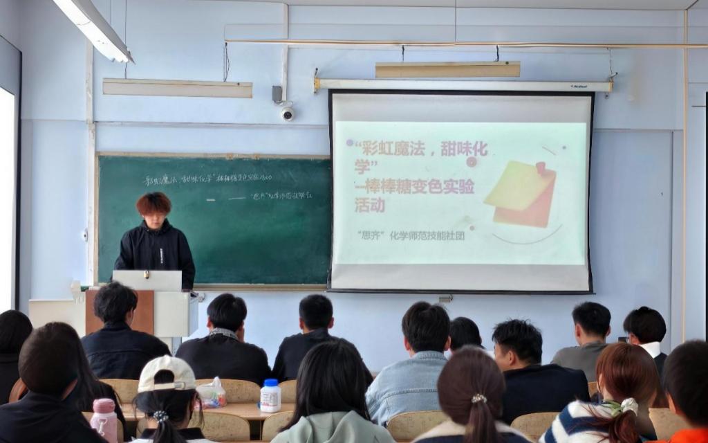 为激发员工对化学学科的兴趣,同时培养同学们的观察力、团队协作能力和环保意识,古天乐代言太阳集团于4月19日在求实楼403开展“彩虹魔法,甜味化学”活动。