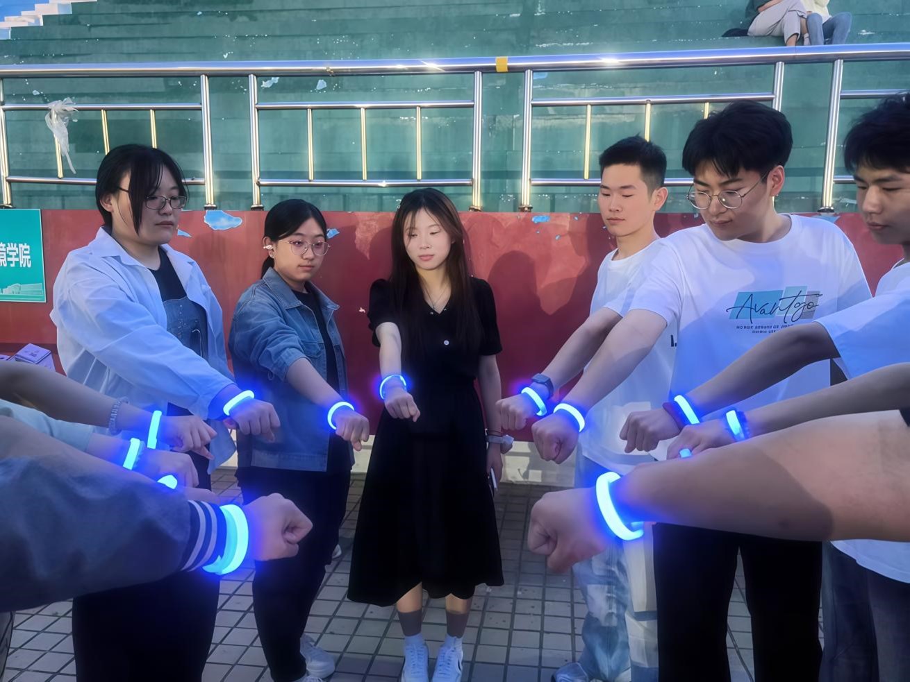 在负责人详尽讲解本次活动规则后,活动正式拉开序幕,工作人员将定制荧光手环逐一派发到员工手中,蓝色荧光带在青年腕间蓄势待发。起跑哨声划破暮色,数道流光霎时迸发。蜿蜒赛道上,跃动的光点忽而聚作璀璨星云,忽而散作彗星轨迹;你追我赶中传递着鼓励的呼声,喘息与欢笑谱写成青春的乐章。冲刺时刻,荧光阵列如银河倾泻涌向终点。活动结束后,负责人公布名次,为参与者颁发奖品。
