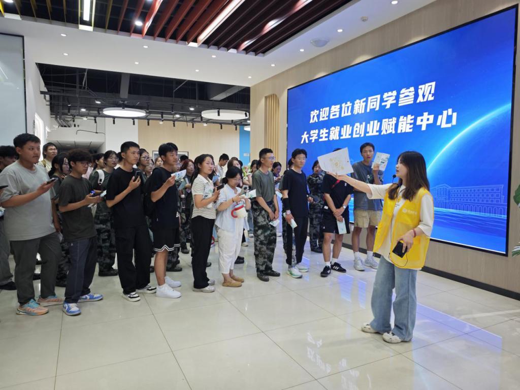 在讲解员的带领下,新生们依次参观了老员工就业创业赋能中心的生涯互动探索区、就业指导区等不同的功能区,先进且实用的设施设备以及丰富多彩的展示内容让新生在沉浸式体验中对就业前沿有了更深刻的了解。参观过程中,同学们认真聆听、积极提问,与讲解员进行了深入的交流互动,同学们纷纷表示,这场“零距离” 的参观体验,使他们直观了解了职业发展的多元可能性,也清晰了大学阶段的努力方向。
