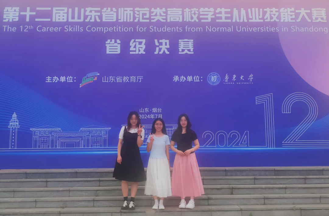 7月17日至21日,第十二届山东省师范类高校员工从业技能大赛决赛在鲁东大学举行,化学师范专业2名推荐选手和1名抽取选手分别参加了初中化学组和高中化学组比赛,最终李文洁、高一梦两位同学获得2项三等奖。